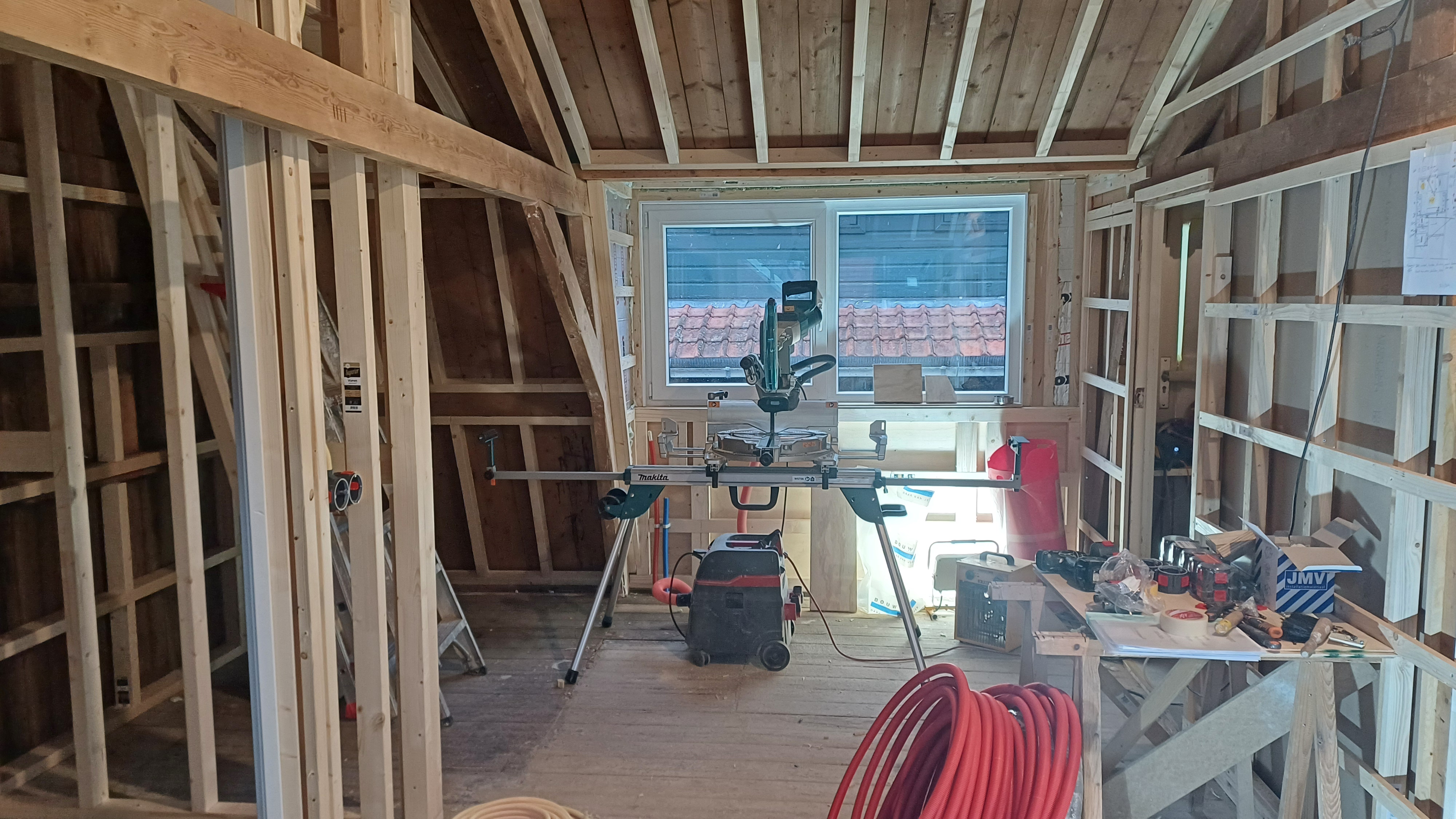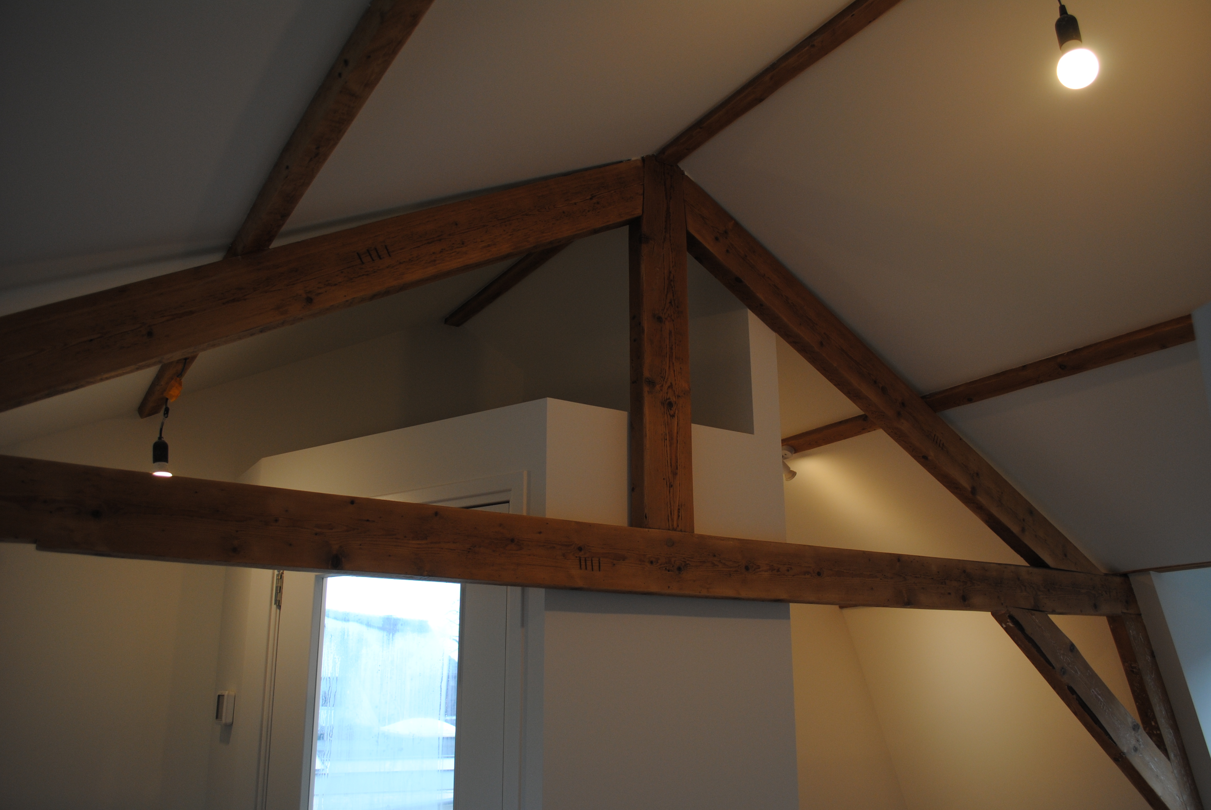 De dak-punt hebben we erbij getrokken en alles extra geïsoleerd, creatief halletje ontworpen, renovatie brio-vloer gebruikt voor extra isolatie en de prachtige houten constructie hebben we laten zien waar mogelijk is.