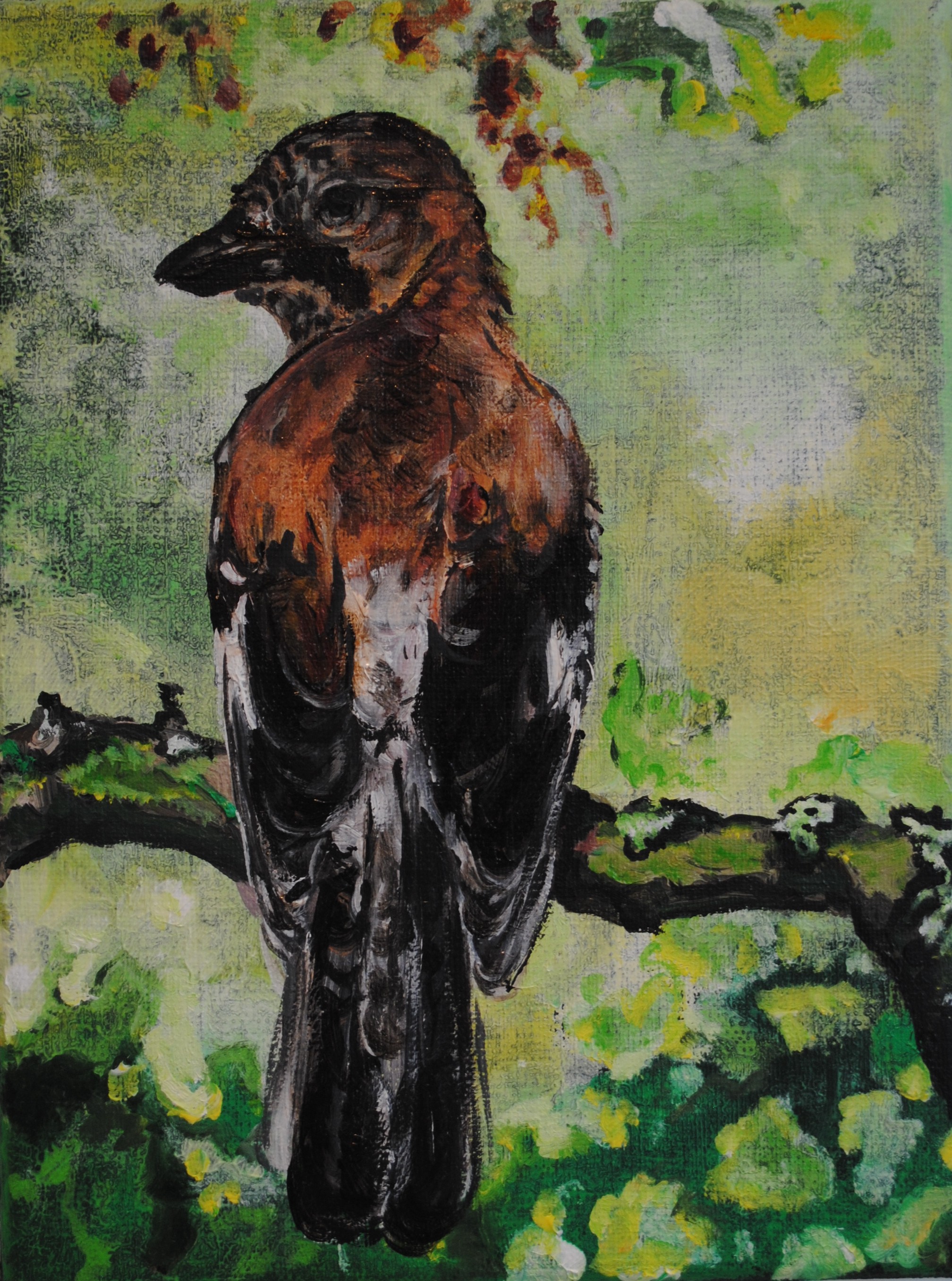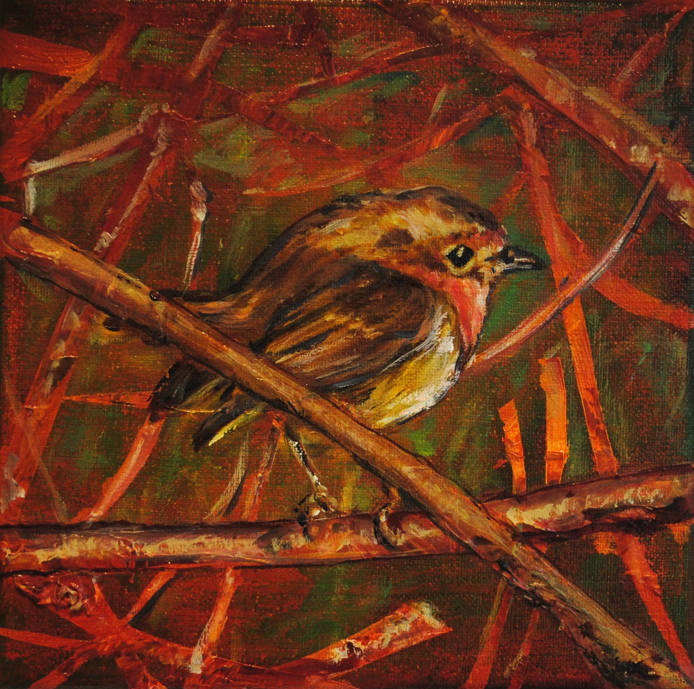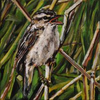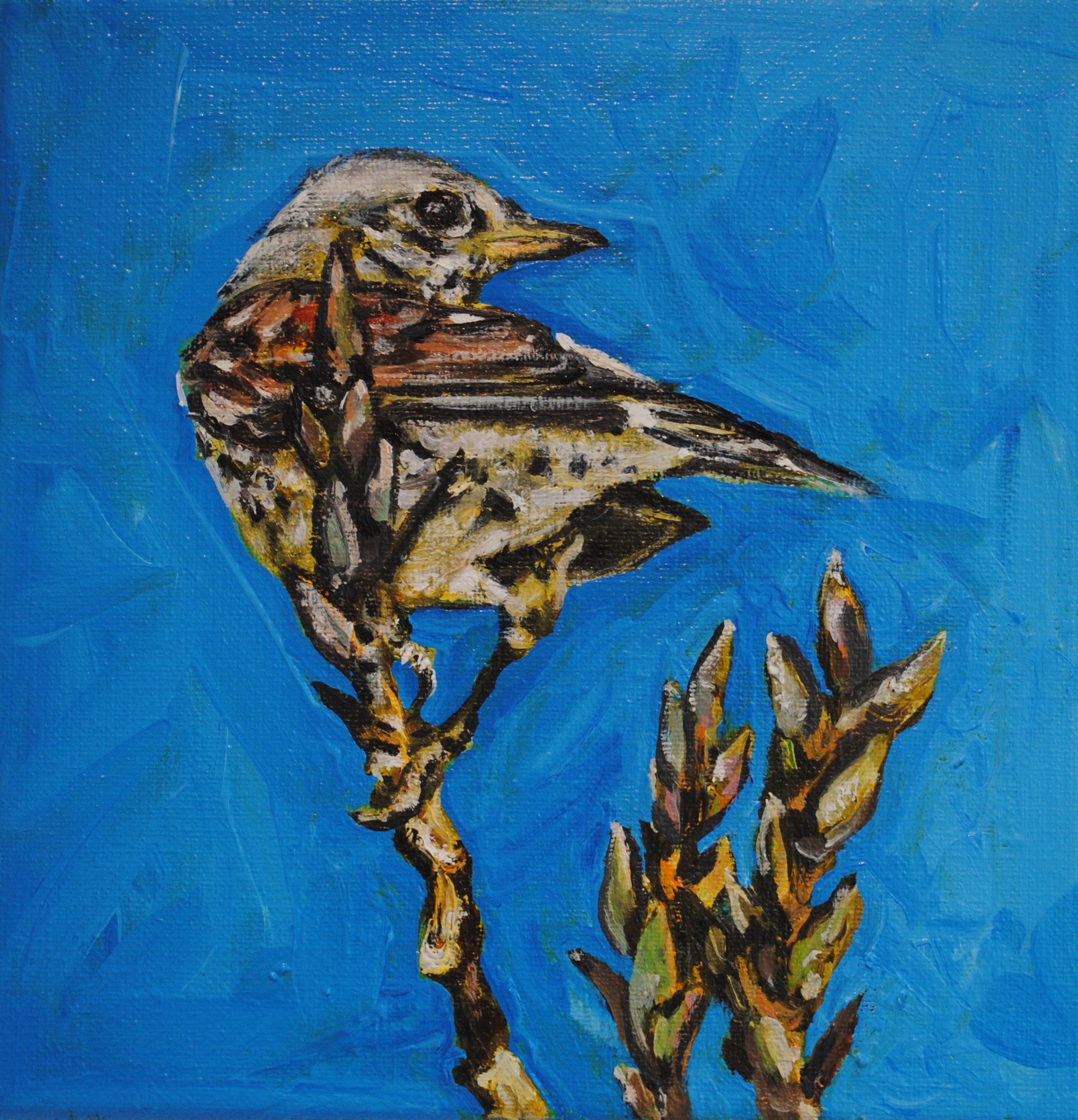 Door verrassende en soms minder geslaagde foto’s, of juist door bijzondere achtergronden, raakte ik opnieuw geïnspireerd als schilder. Na het bezoeken van een tentoonstelling van Jan Mankes vond ik de motivatie om het schilderen, na tien jaar, weer op te pakken. Ik maak klein werk waarin de vogel centraal staat, maar waarin de omgeving soms net zo belangrijk is. Als schilder probeer ik daarbij vooral te experimenteren met verf en techniek.