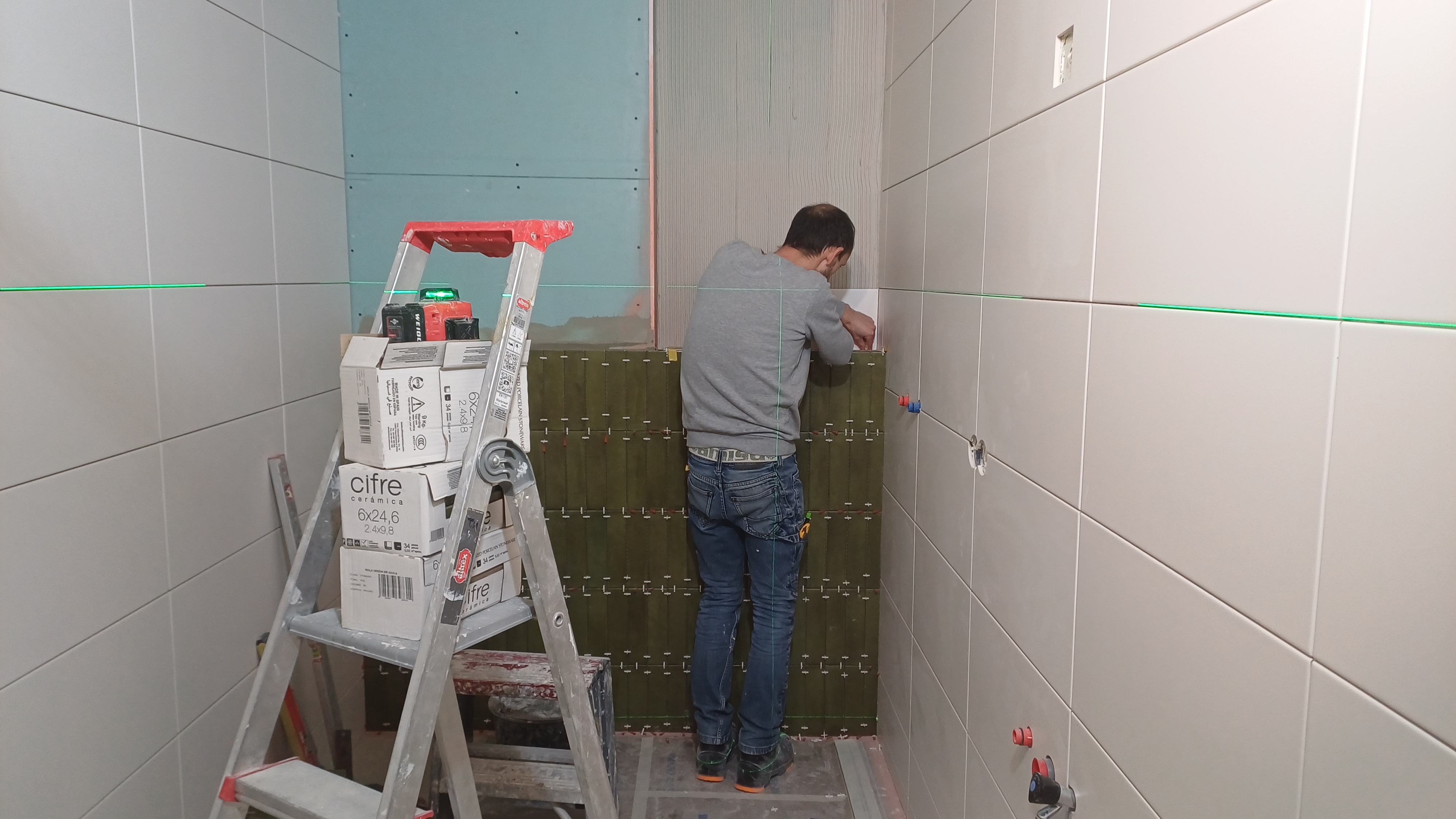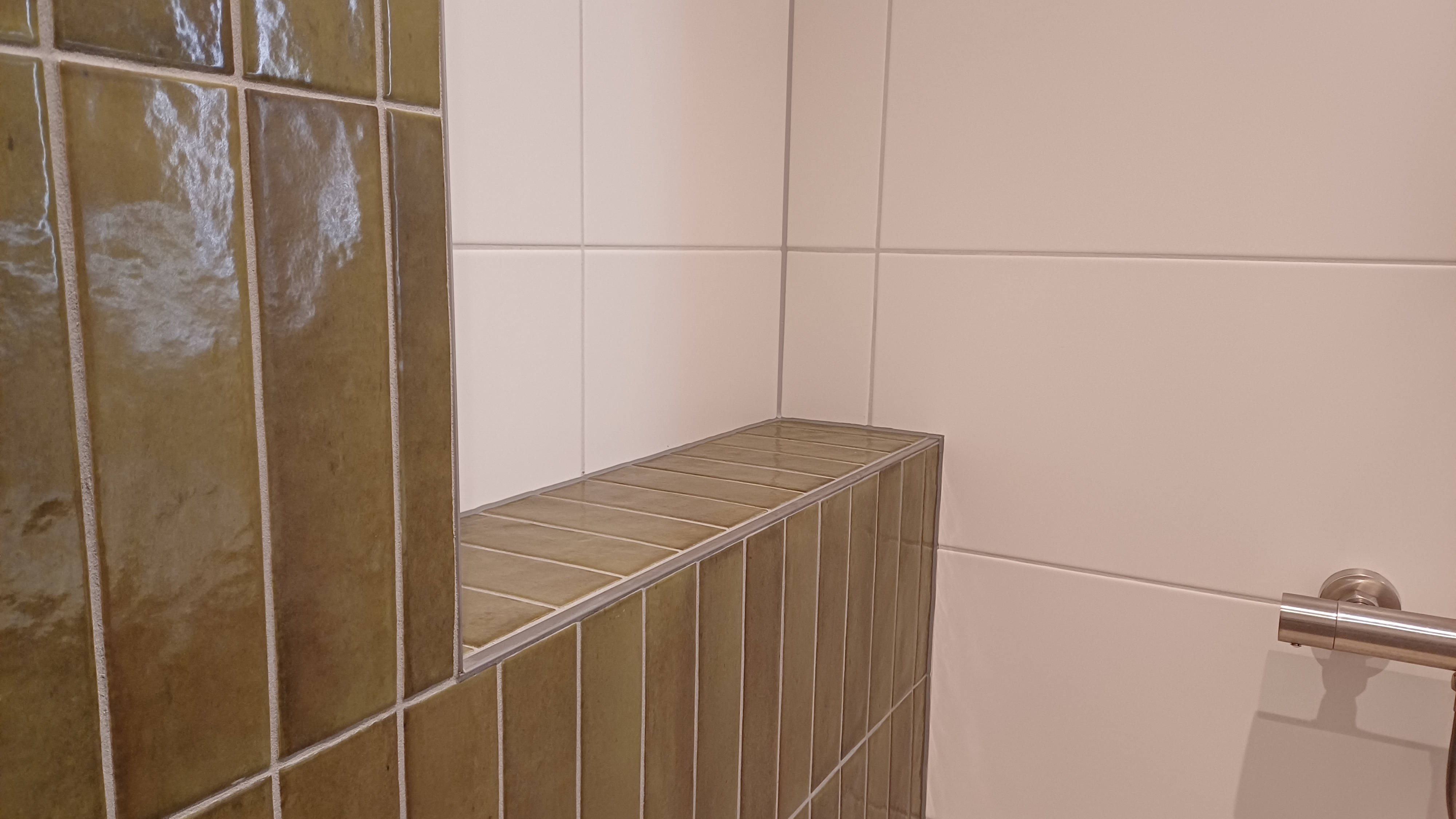 Hoewel de vloerconstructie en de houtconstructie van de muren en het plafond opnieuw moeten worden uitgevoerd, verliep de rest van het proces voorspoedig. Na drie weken konden zij alweer genieten van hun nieuwe badkamer en weer comfortabel douchen.